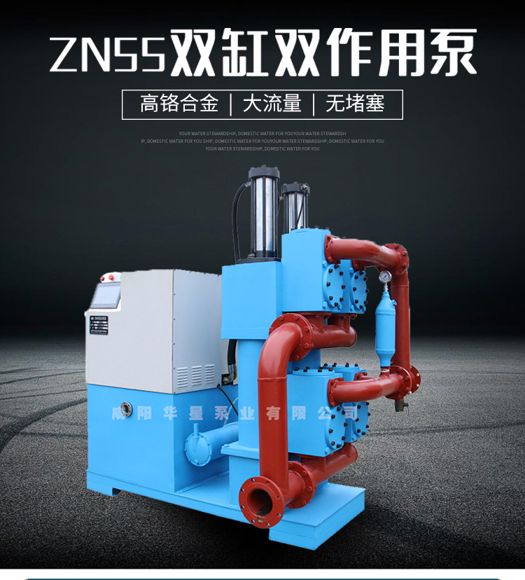 高壓柱塞泥漿泵排出壓力不能由泵本身限定,而取決于泵裝置管道特性,且與流量無關(guān)。因此,若認(rèn)為輸送液體是不可壓縮的,即,在理論上可認(rèn)為往復(fù)泵的排出壓力將不受任何限制,即可根據(jù)泵裝置的管道特性,建立泵的任何所需的排出壓力。所有往復(fù)泵都有一個(gè)泵的排出壓力的規(guī)定,不是說該泵的排出壓力不會(huì)再升高,只是說,由于原動(dòng)機(jī)額定功率和泵本身的結(jié)構(gòu)強(qiáng)度的限制,不允許在超出這一排出壓力下使用罷了。